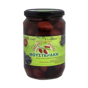 Najszlachetniejsza odmiana greckich oliwek Kalamata pochodzi z nasłonecznionych gajów oliwnych znajdujących się w górach Nea Roumata regionie Chanii na Krecie. Wyróżnia ją piękny intensywny ciemny kolor, kształt migdałów oraz niepowtarzalny i delikatny smak. Ciemne oliwki Mousteraki pełne są witamin i kwasów tłuszczowych oraz zawierają cenne minerały: fosfor, potas, żelazo, miedź, a także błonnik. Charakteryzuje je niska kaloryczność. Starannie prowadzony proces produkcji sprawia, że greckie oliwki zachowują swój naturalny aromat i wysoką wartość odżywczą.